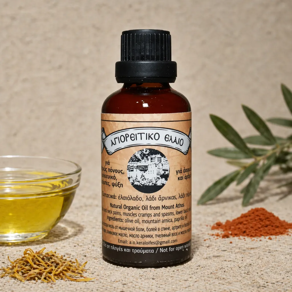 Αγιορείτικο Έλαιο για Πόνους – Αυχενικό – Κράμπες – Ψύξη – Οσφυαλγία